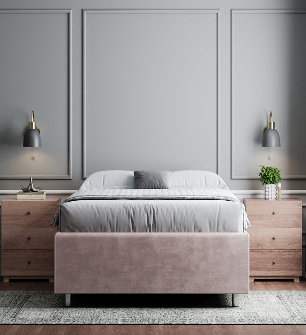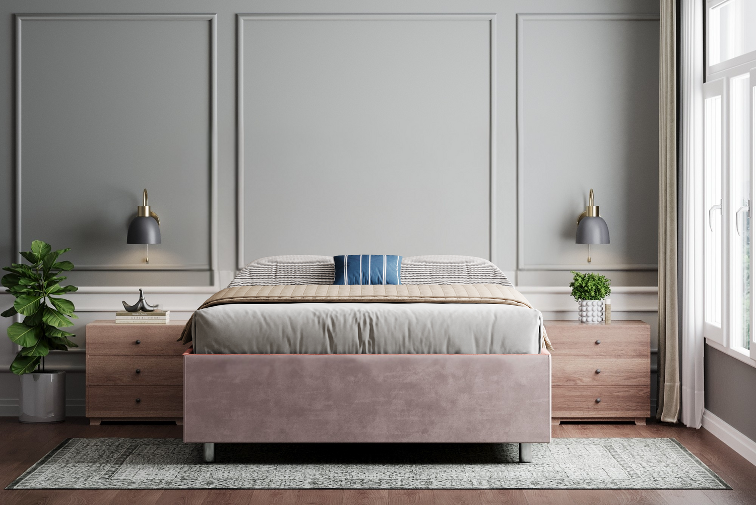 Concebido para um conforto diário, o Gianna tem lados almofadados, uma estrutura open base respirável e pés cromados altos, para uma limpeza fácil por baixo da cama. Combine-o com uma cabeceira e estofos à sua escolha, para criar um visual unicamente seu.