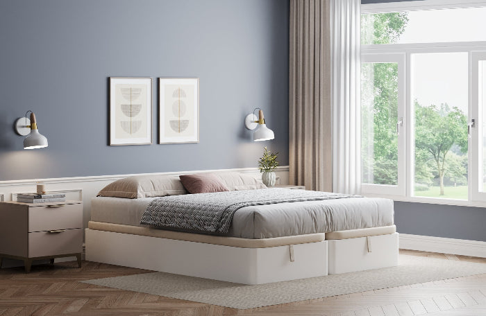 Maximize o seu espaço, sem abdicar do estilo. O Sommier com Arrumação Vincent contém um mecanismo de elevação a gás, que revela um compartimento de arrumação escondido debaixo da cama, perfeito para manter o seu quarto arrumado.