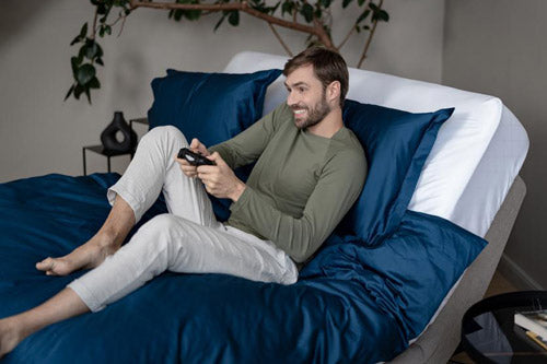 O ErgoBed 450 é um estrado ajustável que lhe permite elevar ou baixar as áreas da cabeça e das pernas, conforme desejado, com um simples botão. O ErgoBed 450 é o produto ideal para aliviar problemas lombares ou para descansar pernas cansadas e inclui uma função de massagem, que promove o alívio do stress e um sono de melhor qualidade.