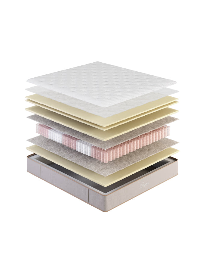 O colchão Regal foi propositadamente concebido com materiais cuidadosamente selecionados - como a malha belga e o algodão de alto volume - e tecnologia avançada, como é o caso da espuma Comfort Foam, com Air Flow e um bloco de molas Soft Touch. O elevado nível de firmeza proporciona um suporte ideal do seu corpo ao longo da noite, promovendo um sono mais profundo e revigorante.