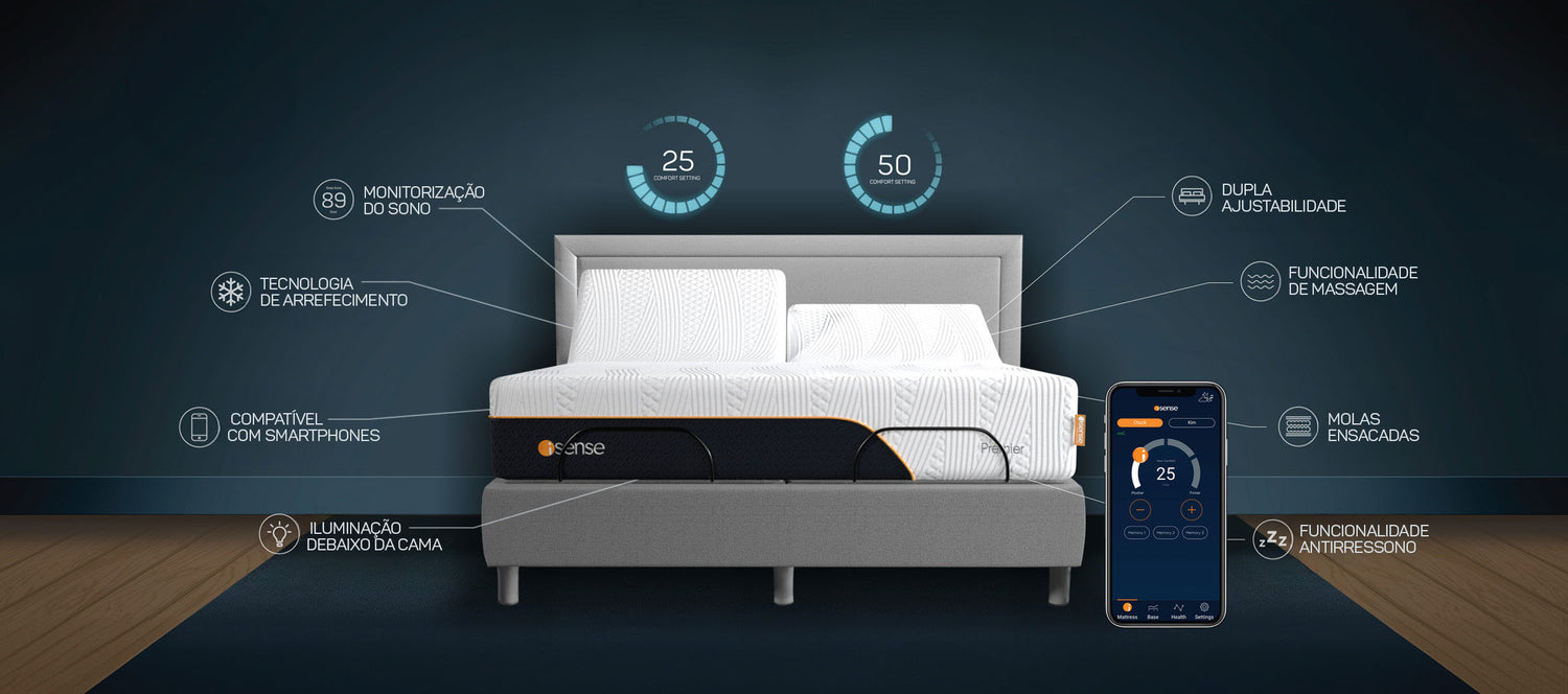 Em conjunto com a tecnologia patenteada Comfort Control™ da iSense, que proporciona um conforto e suporte personalizados, os casais embarcam numa experiência de sono especialmente adaptada a eles. O colchão Hybrid Premier tem um sensor de sono integrado, que monitoriza a qualidade do sono e oferece dicas personalizadas para dormir melhor.